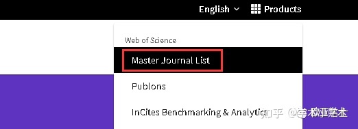 1、登录WOS数据库,点击右上方Products按钮,选中Master Journal List.