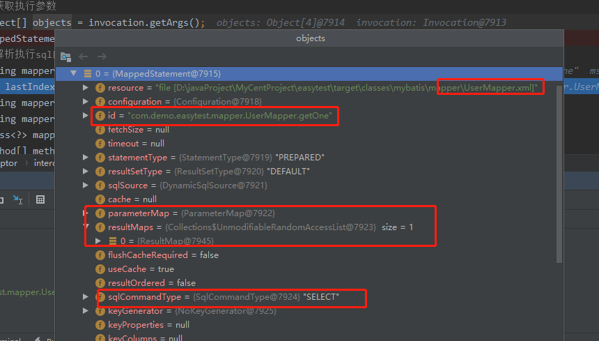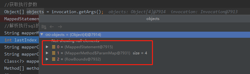 //获取执行参数 Object[] objects = invocation.getArgs(); MappedStatement ms = (MappedStatement) objects[0];