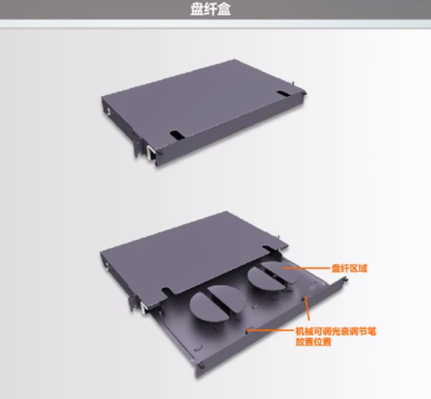 盘纤盒,可容纳40根光纤,内部容纳光纤总长度50米