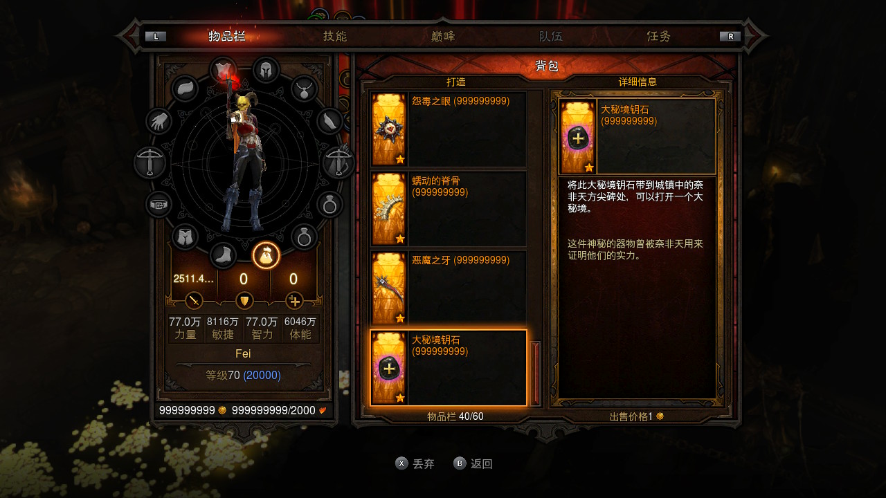 除了必掉太古这个极其护肝和有用的金手指外,我们能想到的另一个金手指就是人物背包里的素材,包括金钱,宝石,材料等各种日常必需品,具体的固定素材有以下这些: