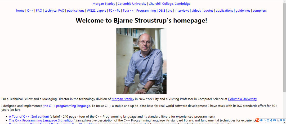 Bjarne Stroustrup,不认识的可以去面壁了,没有他,就没有我们现在的饭碗。Bjarne Stroustrup是丹麦人,目前任教于TAMU。他的Homepage和他的书籍The C++ Programming Language一样,都是百科全书级的,如果你认真研究,你也会成为你同事或周围人的C++之父。