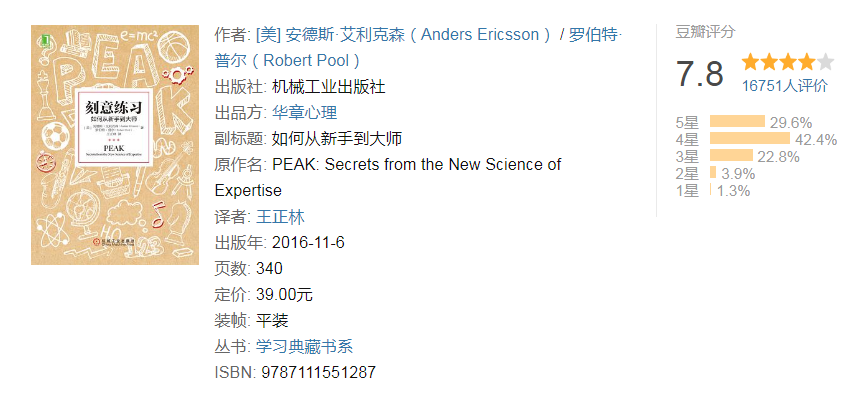 这本书深刻分析刻意练习背后的原理,用科学方法论证如何从新手到大师。