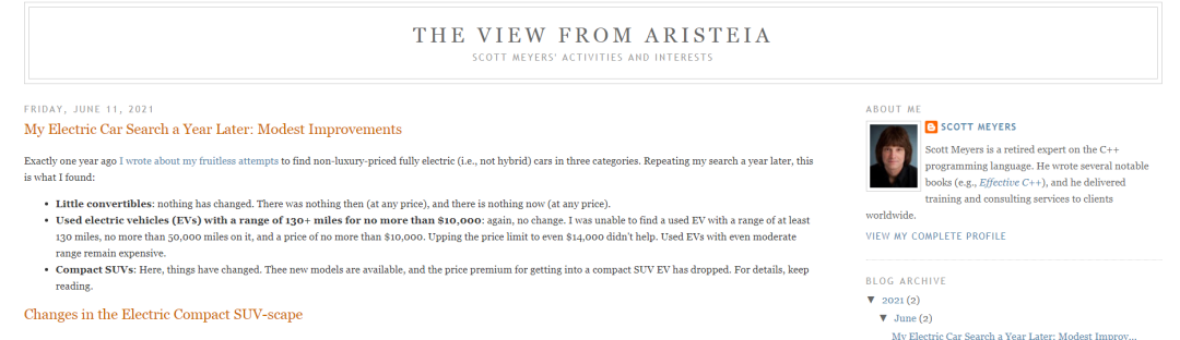Scott Meyers,不多介绍,世界上几乎每个C++程序员都应该知道的名字,畅销书:Effective C++, More Effective C++的作者。博客长期更新,就凭Scott Meyers这个名字,就值得一读。