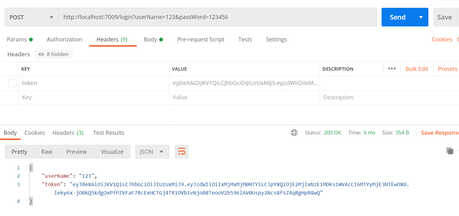 public class TokenController {@Resourceprivate JwtConfig jwtConfig ;/** 返参格式* {* "userName": "ID123",* "token": "eyJ0eXAiOiJKV1QiLCJhbGciOiJIUzUxMiJ9.* eyJzdWIiOiJJRDEyM3B3MTIzIiwiaWF0Ijox.* SqqaZfG_g2OMijyN5eG0bPmkIQaqMRFlUvny"* }*/// 拦截器直接放行,返回Token@PostMapping("/login")public Map<String,String> login (@RequestParam("userName") String userName,@RequestParam("passWord") String passWord){Map<String,String> result = new HashMap<>() ;// 省略数据源校验String token = jwtConfig.getToken(userName+passWord) ;if (!StringUtils.isEmpty(token)) {result.put("token",token) ;}result.put("userName",userName) ;return result ;}// 需要 Token 验证的接口@PostMapping("/info")public String info (){return "info" ;}