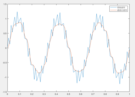适用于分段数据滤波,测试波形是由原始信号+高斯白噪声+均匀白噪声。