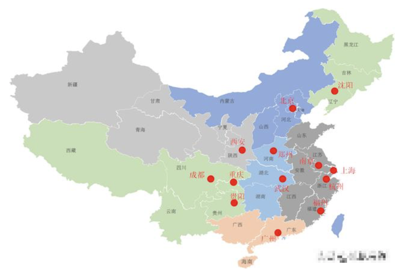 2013年国务院发布了"宽带中国"战略实施方案,将宽带战略上升至国家战略,不断推进国家级骨干直联点的建设,加快带宽扩容、强化监测通报、推动结算体系和互联网架构优化。目前国家级骨干直连点数量已达到13个(3+7+3),即北京、上海、广州、南京、成都、武汉、西安、沈阳、重庆、郑州、杭州、贵阳·贵安、福州,已经覆盖了国内三大运营商IP骨干网核心节点所在城市。