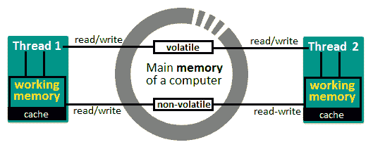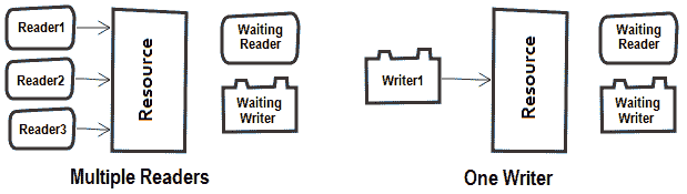 public class ReadWriteWithLock {private static final Logger logger= Logger.getLogger(ReadWriteWithLock.class.getName());private static final Random rnd = new Random();private static final ReentrantReadWriteLock lock= new ReentrantReadWriteLock(true);private static final Reader reader = new Reader();private static final Writer writer = new Writer();private static int amount;private static class Reader implements Runnable {@Overridepublic void run() {if (lock.isWriteLocked()) {logger.warning(() -> Thread.currentThread().getName() + " reports that the lock is hold by a writer ...");}lock.readLock().lock();try {logger.info(() -> "Read amount: " + amount + " by " + Thread.currentThread().getName());} finally {lock.readLock().unlock();}}}private static class Writer implements Runnable {@Overridepublic void run() {lock.writeLock().lock();try {Thread.sleep(rnd.nextInt(2000));logger.info(() -> "Increase amount with 10 by " + Thread.currentThread().getName());amount += 10;} catch (InterruptedException ex) {Thread.currentThread().interrupt();logger.severe(() -> "Exception: " + ex);} finally {lock.writeLock().unlock();}}...}