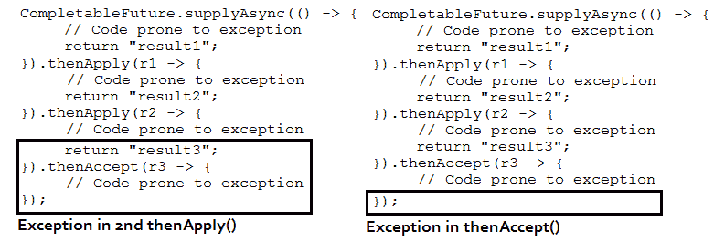 compareAndSetForkJoinTaskTag():编写一个程序,将 Fork/Join 框架应用到一组相互依存的任务,只需执行一次(例如任务 D 依赖于任务 C 和任务 B,但任务 C 依赖于任务 B 也一样,因此任务 B 只能执行一次,不能执行两次。 CompletableFuture:通过CompletableFuture写几个代码片段来举例说明异步代码。- 组合多个