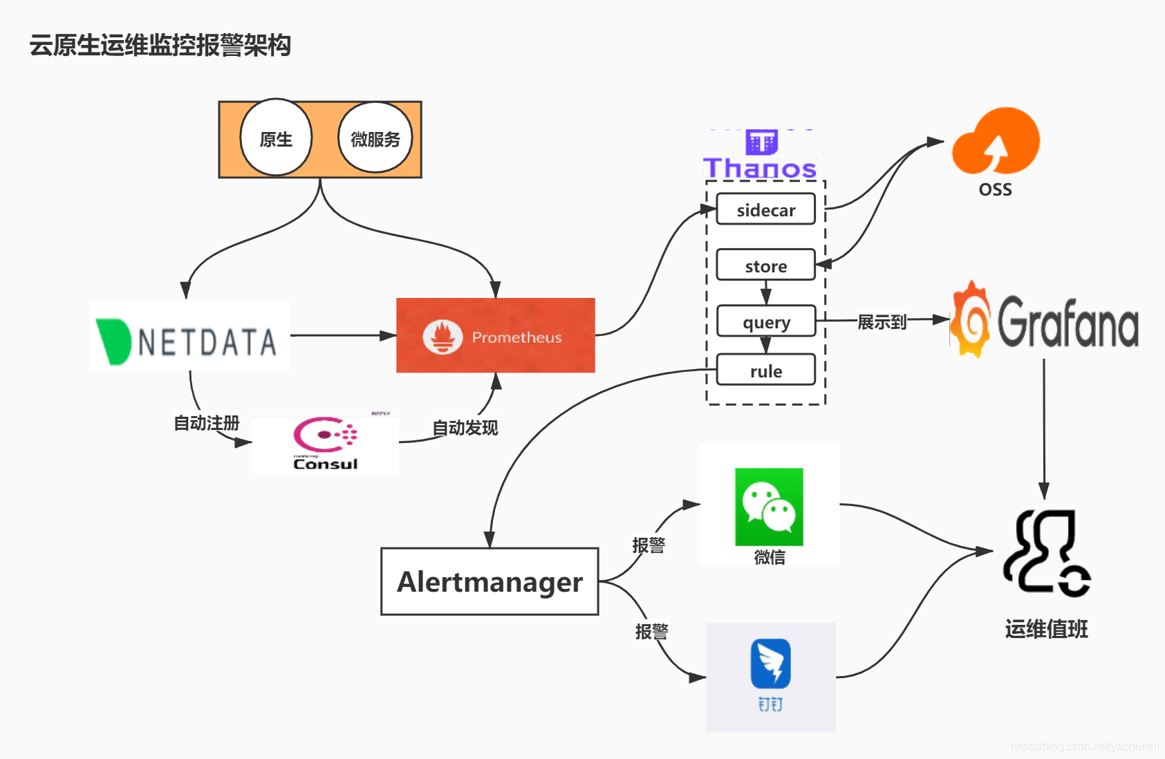通过对比、了解业务各种报警监控采集方案,采用netdata + Prometheus + consul + thanos方案,效率更高、功能更强大、可扩展性强,较为符合云原生业务发展和需求。