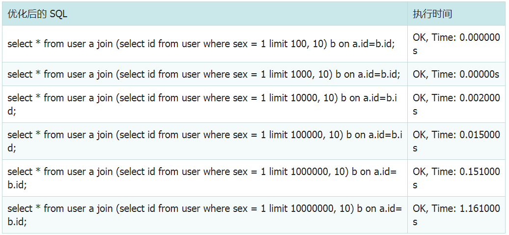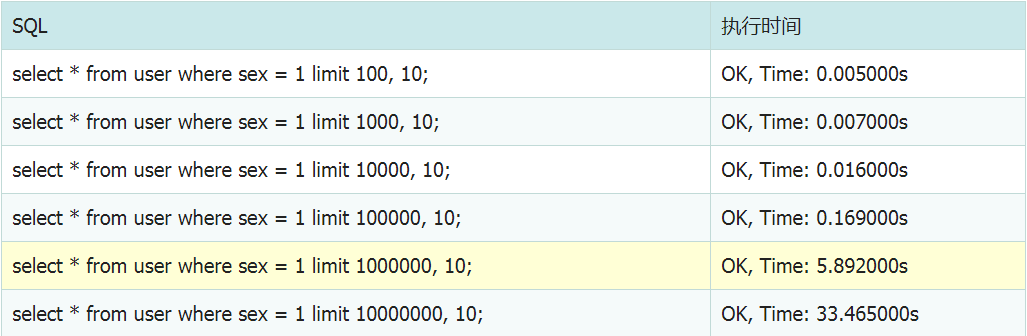 比如像上面的示例 user 表,我要使用 limit 分页得到1000001到1000010条数据,可以这样写 SQL: