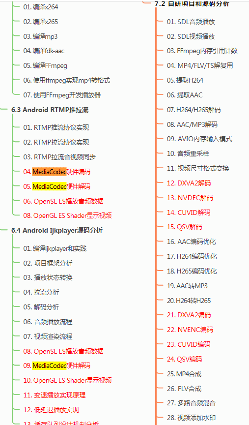 ● “audio/g711-mlaw” - G.711 ulaw audioMediaCodec还提供了createByCodecName (String name)方法,支持使用组件的具体名称来创建编解码器。但是该方法使用起来有些麻烦,且官方是建议最好是配合MediaCodecList使用,因为MediaCodecList记录了所有可用的编解码器。