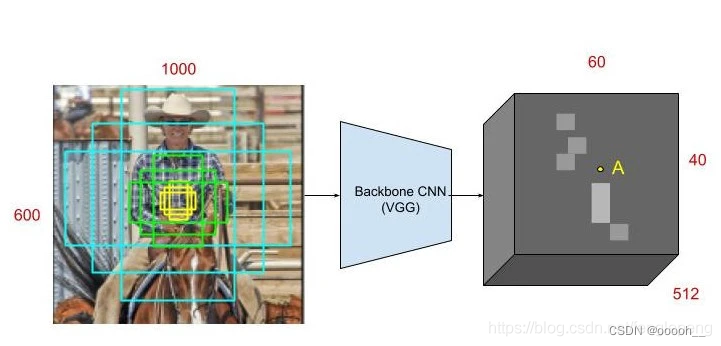 简单来说:输入一张图片,经过骨干网络的特征提取,得到一个m*n的特征图,映射到原图上,将原图划分为m*n个区域(每个区域很小),原图的每个区域的中心点由这个特征图上的一个像素坐标表示。anchor机制,在特征图上每个像素点对应原图的一小个区域内生成k个(论文里为9个)可能存在目标的候选框(anchor box),再输入到RPN中判断每个像素点对应的k个区域是否包含目标,如果包含则输出给后面的网络进一步判断,即从m*n*9个候选框中作筛选,提取proposals。