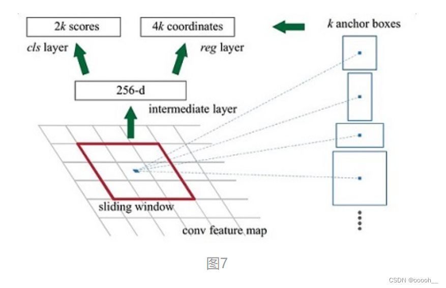 参照上面原文中的图来讲,首先,在拿到conv layers的feature map后,先经过一个3x3卷积(卷积核个数为256)红色框是一个anchor,所以通过这个卷积层后feature map的通道数也是256,k是anchor个数(文中默认是9)。
