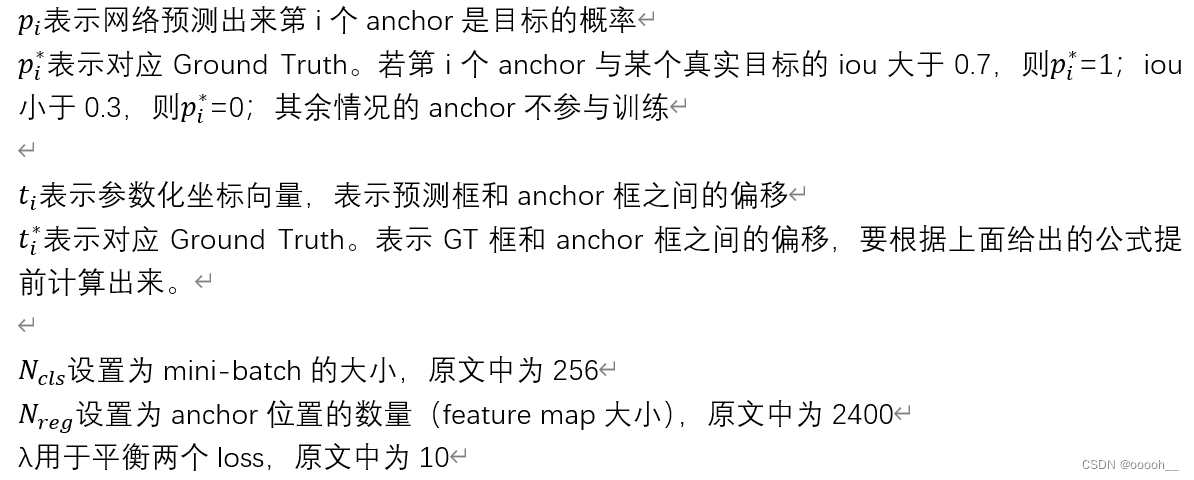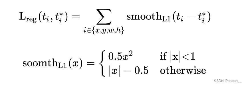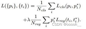 - Lreg:smooth L1 loss,用于修正anchor框,前面乘了一个pi*表示只回归有目标的框