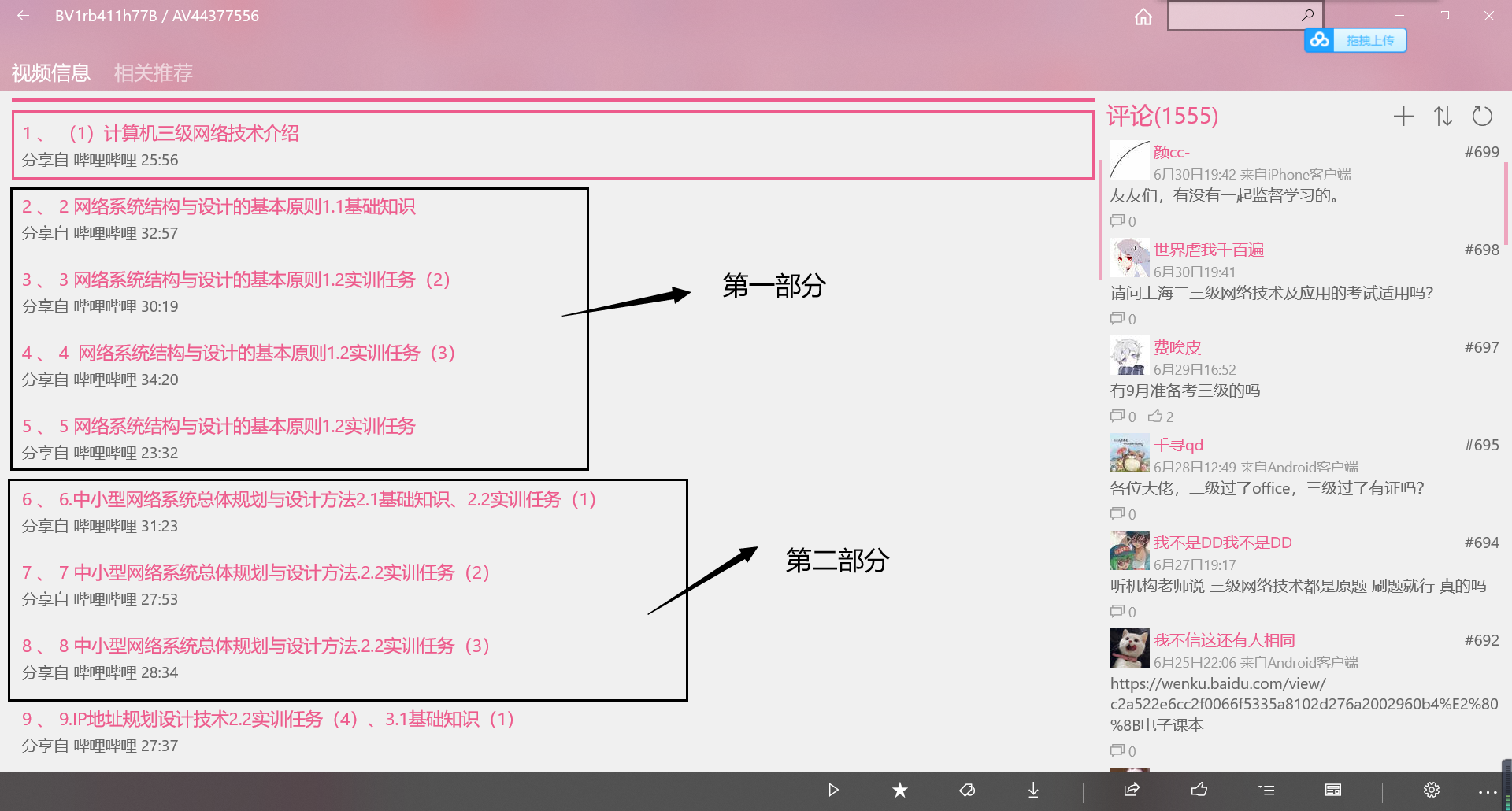 例如前8个视频,2-5为第一部分,6-8为第二部分,拆分成两个板块进行学习,博主学的时候是一天学习一个部分,1.5倍速,看完之后做题巩固,花不了太长时间。如果着急也可以一天学习两个板块甚至更多板块,再者可以舍弃视频直接看考点分析+做题。个人建议还是一边看视频一边学习,虽说我们的目的是为了通过考试,但看看视频扩充一下知识面也未尝不是一件好事,还能在做题的时候得心应手。