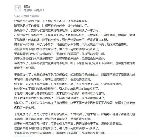 - 第五:一个人每天的创造力是有时限的。在这个时限外,他不再是一个优秀的创造者,而是一个笨蛋。程序员也需要不断提升自己的技术水平,我觉得既然选择了这行,就不要怕辛苦。