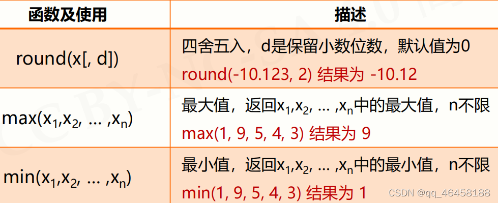 函数:一个名字+一个括号,如input( )、eval( )、print()根据输入参数产生不同输出的功能过程,<函数名>(<参数>)。