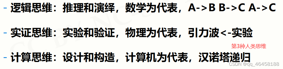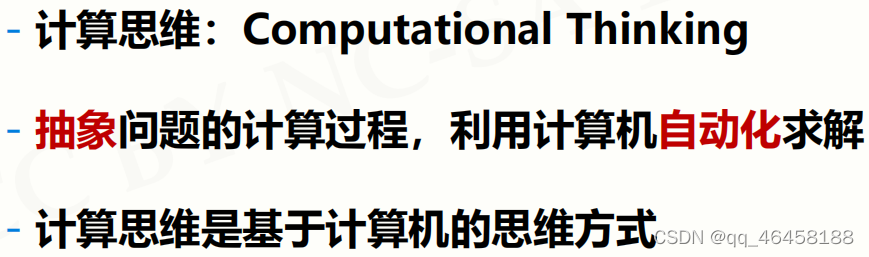 逻辑思维:靠数学推理形成公式来获得结果;计算思维:模拟运算过程并用计算机完成大量运算。计算思维基于计算机强大的算力及海量数据,抽象计算过程,关注设计和构造,而非因果;以计算机程序设计为实现的主要手段。
