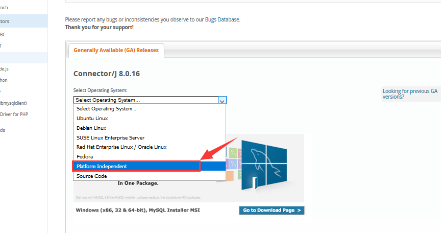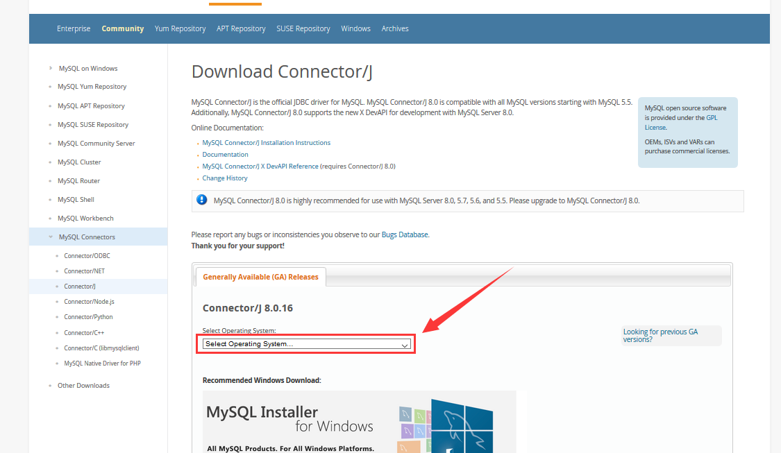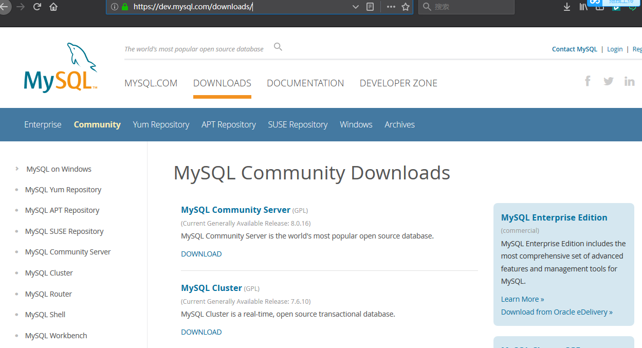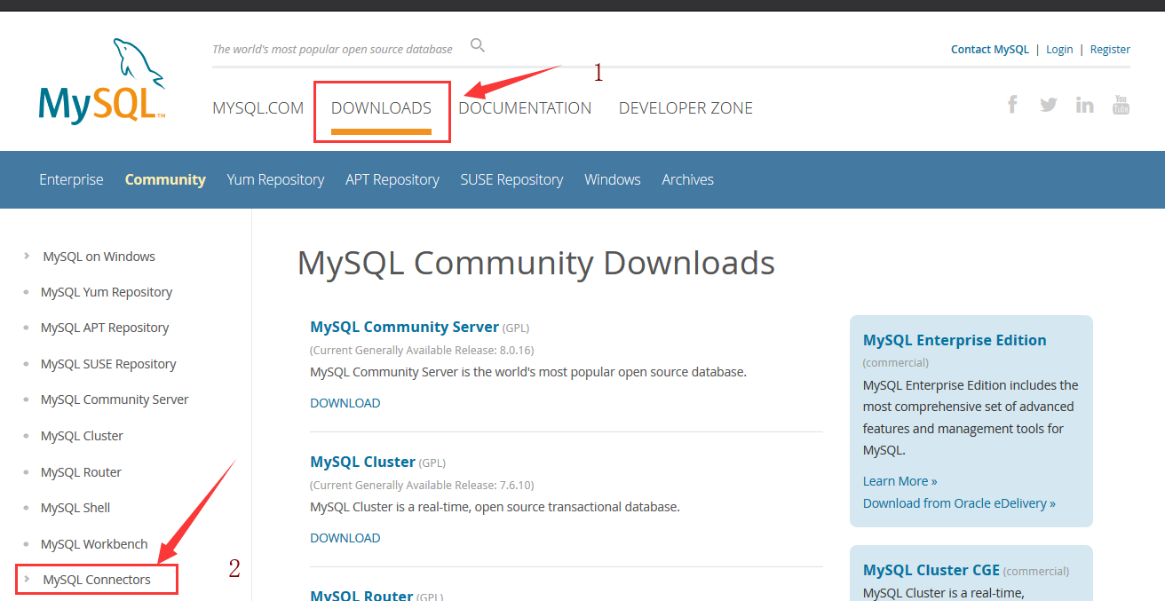 下载地址:https://www.mysql.com/downloads/