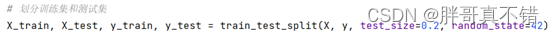 通过train_test_split()方法按照80%训练集、20%测试集进行划分,关键代码如下: