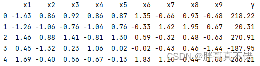 使用Pandas工具的head()方法查看前五行数据: