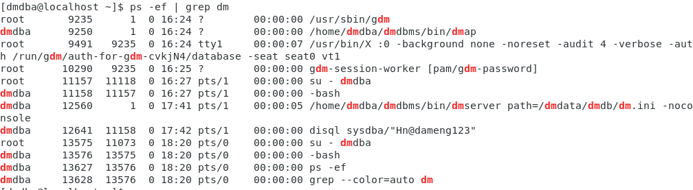 [dmdba@localhost dmdb]$ cd /home/dmdba/dmdbms/bin