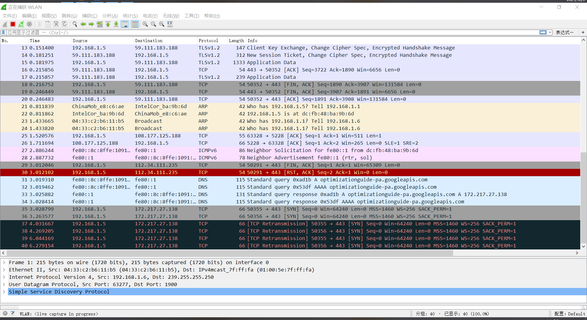 1、wireshark抓包界面: