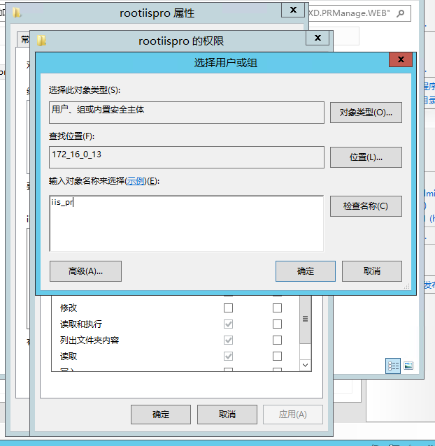 打开新增的rootiispro文件夹,右键>>属性>>安全>>选择当前站点使用的iis用户,赋予编辑和读取的权限
