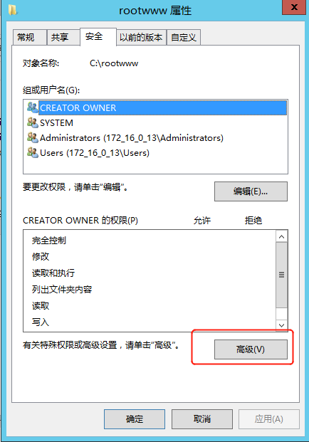 保存,返回到安全选项卡,点击编辑,新增iisusers用户组,给它只读权限就行