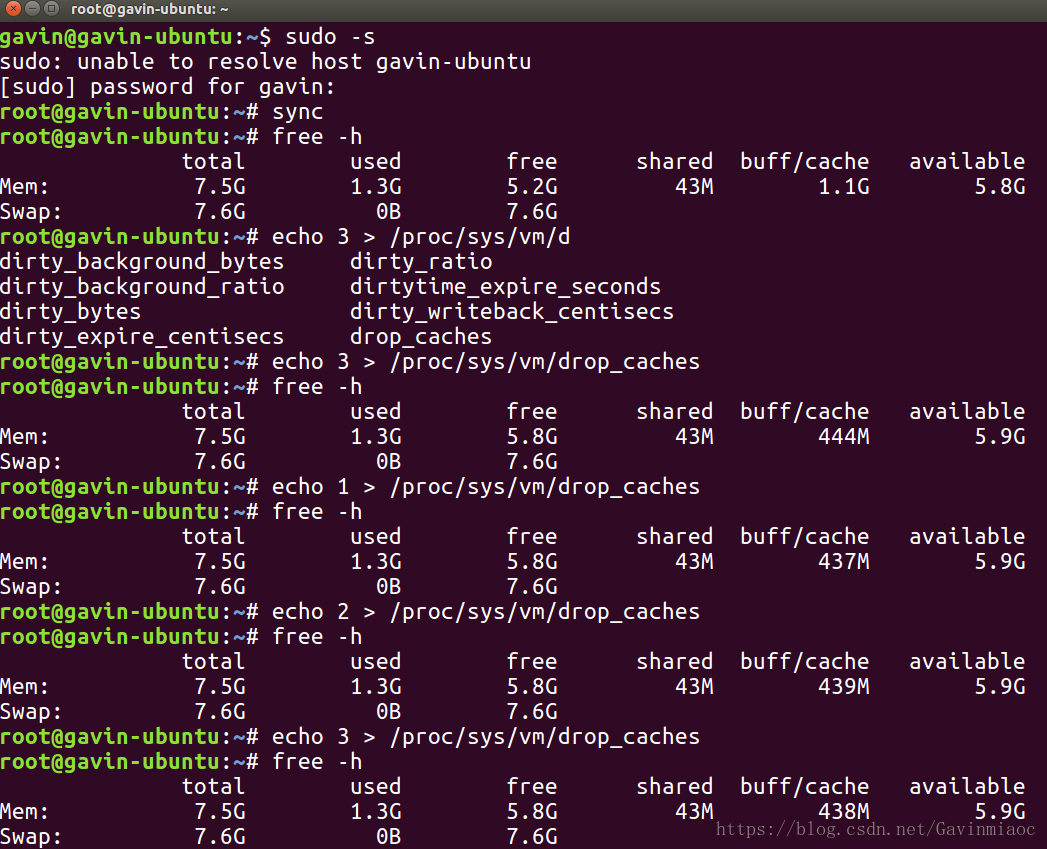 所以我们在清理缓存先要先把buffe中的数据先写入到硬盘中,sync命令