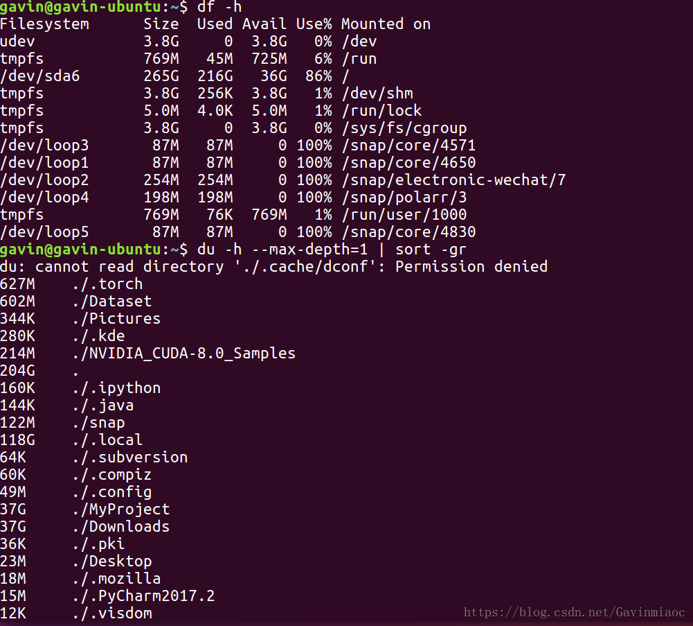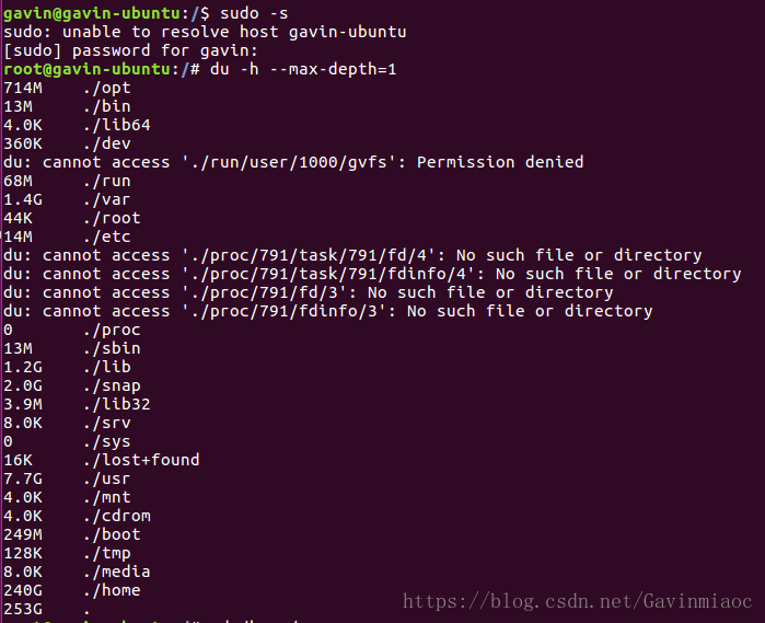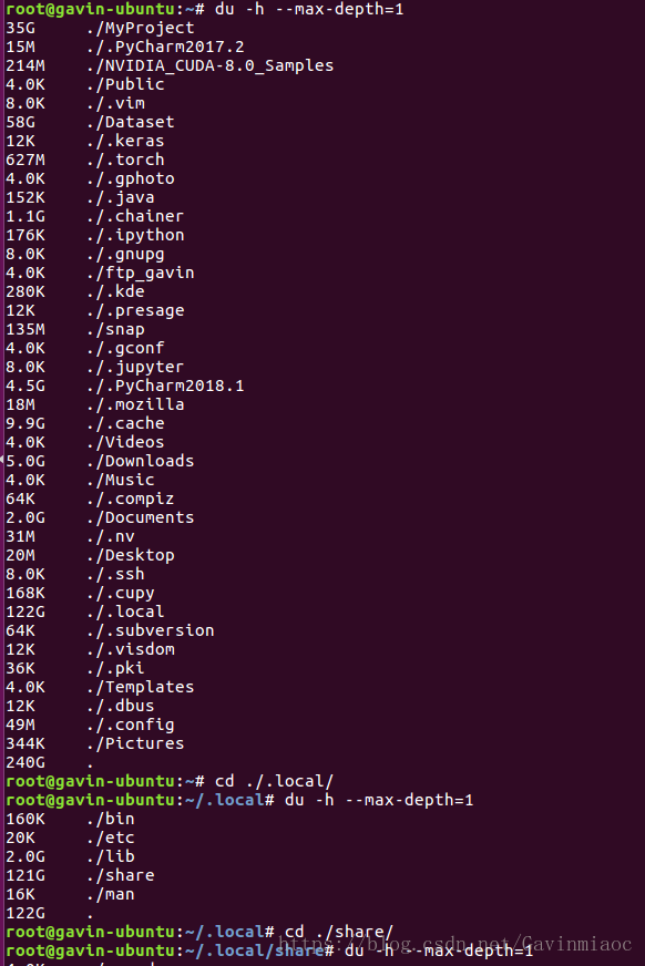 2. 用du检查发现各目录占用的空间: