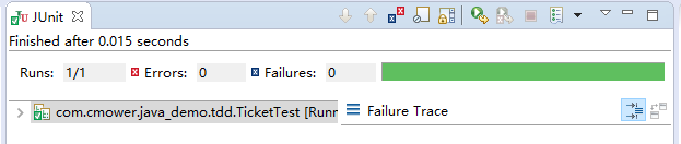 public class TicketTest {private Ticket ticket;@Beforepublic void setUp() throws Exception {ticket = new Ticket();}@Testpublic void test() {BigDecimal total = new BigDecimal("99");assertEquals(total, ticket.sale(1));}}