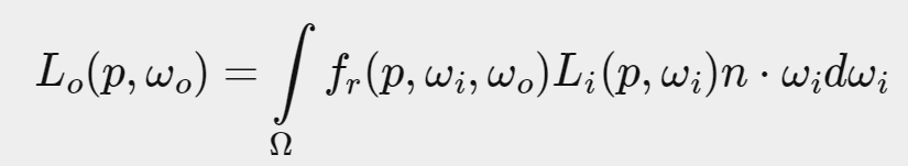 反射方程基于辐照度,它是以点 p 为中心的半球 Ω 内的测量光的所有入射辐射的总和。