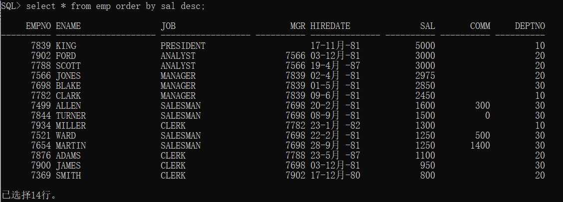 select * from emp order by sal desc;