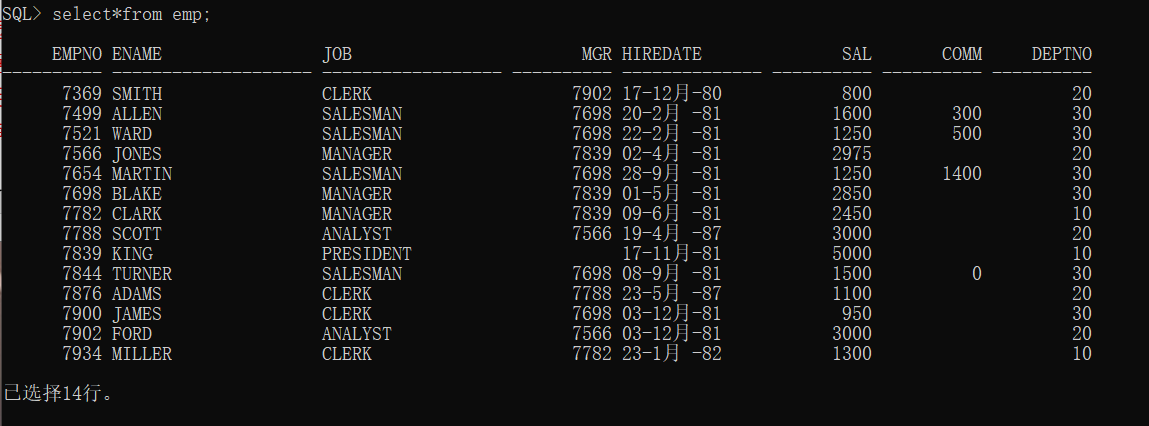 select * from emp;观察