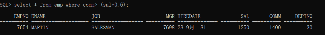 select * from emp where conn>=(sal*0.6);