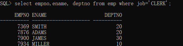 #列出所有办事员(CLERK)的编号,姓名和部门编号