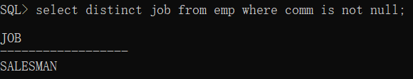 select distinct job from emp where comm is not null;