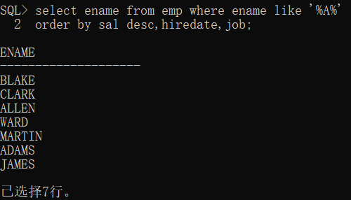 where ename like ‘%A%’