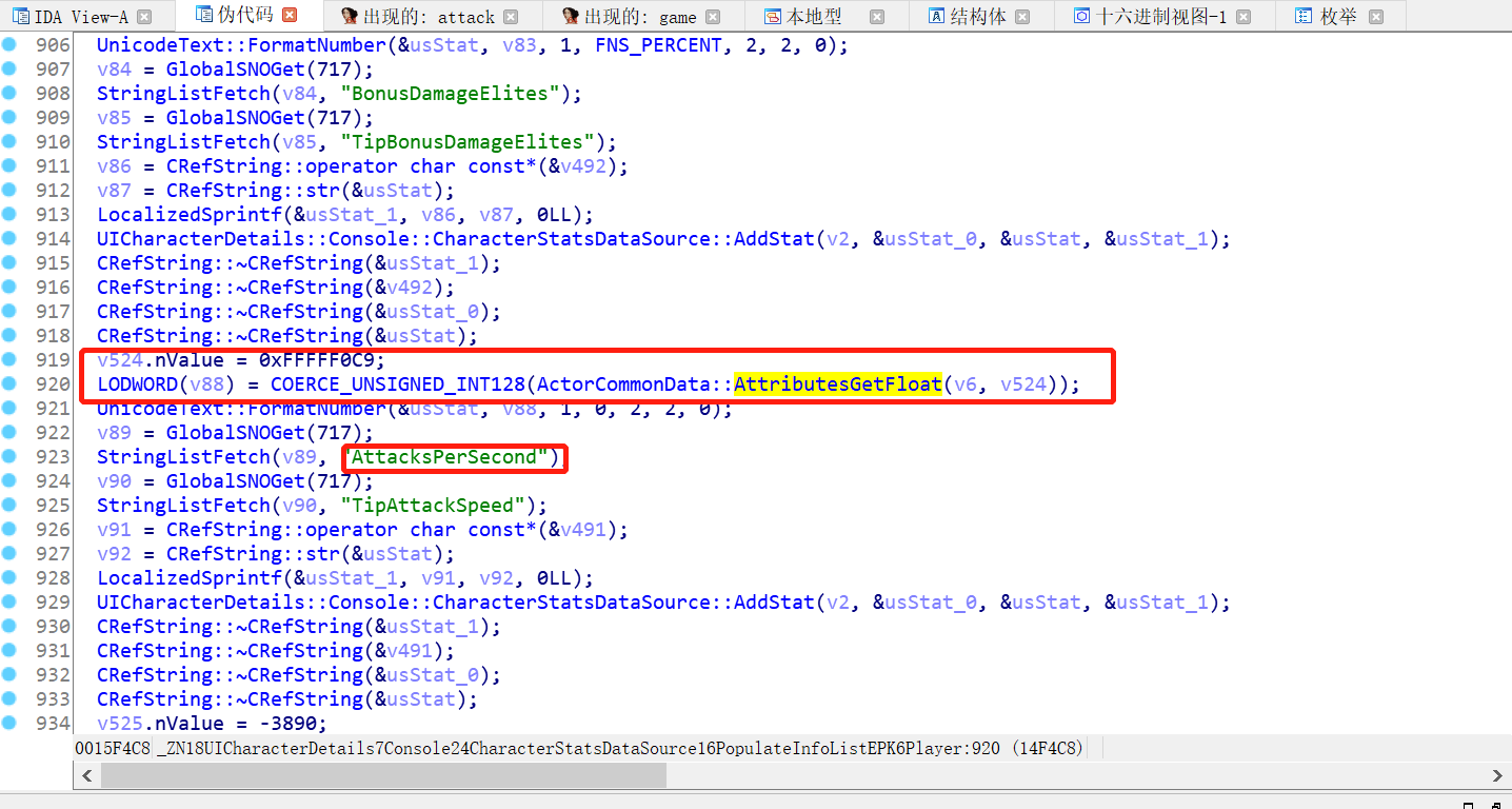 11. 但这还没有结束,我们只是修改了实时攻速,面板攻速还没变,我们可以在populateinfolist函数里找到