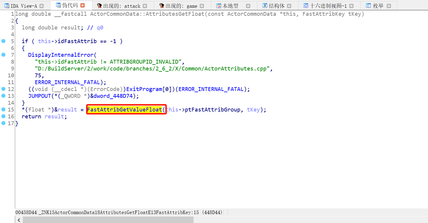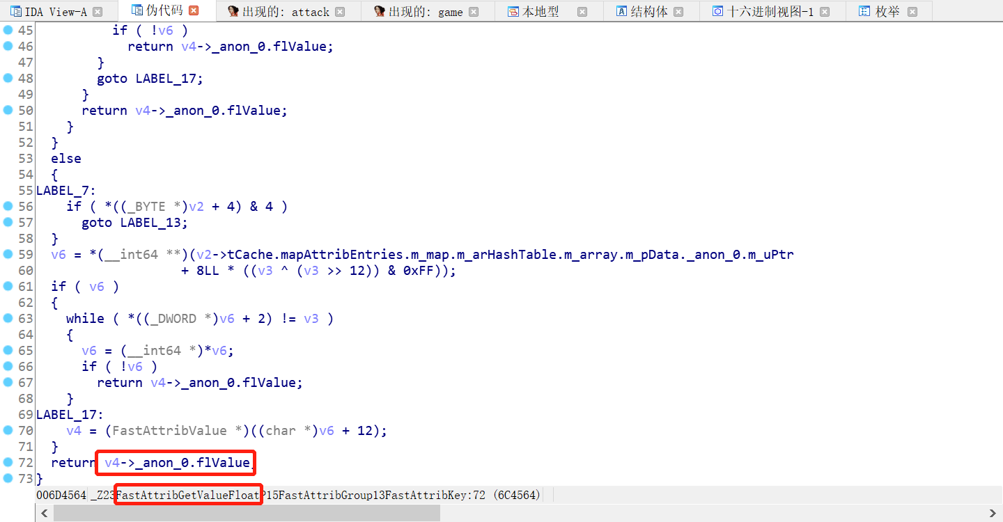 7. PowerGetAttackSpeedAtLevel函数代码里我们又发现了另一个重要函数PowerGetFormulaValue,根据名字就可以知道是通过公式计算属性值的,攻速也是通过这个函数计算得到的,我们继续点进去,拉到最后,终于找到了要hack的地方