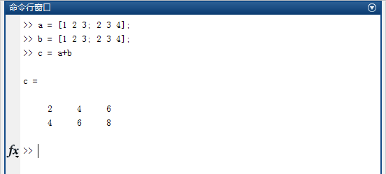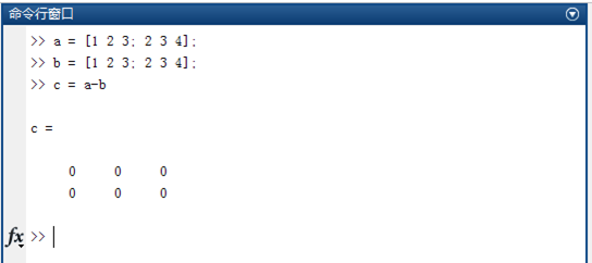 下面通过Matlab来求解矩阵减法(在命令窗口输入)。