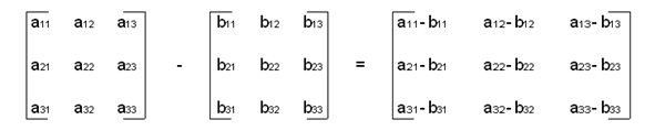以3*3矩阵为例,矩阵减法的实现公式如下: