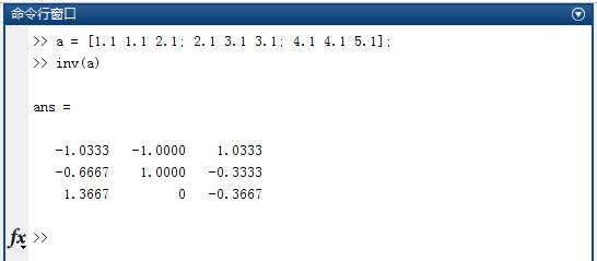 下面我们通过Matlab来实现求逆矩阵(在命令窗口输入):