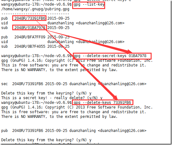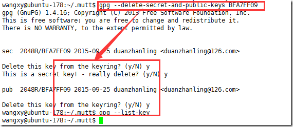 gpg --delete-secret-keys 01BA7978 先删除私钥