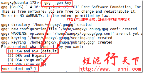 现在我们就来创建这对密钥,使用gpg --gen-key命令。如下: