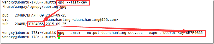 gpg -a -o duanzhanling-sec.asc --export-secret-key 0B7F4055
