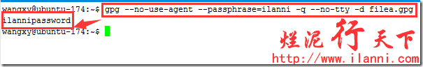 gpg --no-use-agent --passphrase=ilanni -q --no-tty -d filea.gpg