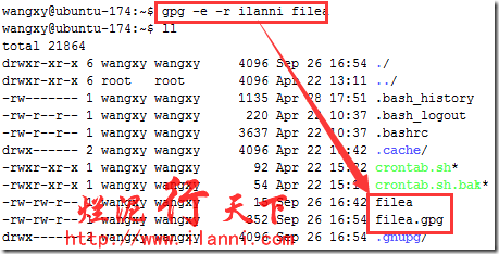 这条命令的意思是,使用ilanni这个用户的密钥对文件filea进行加密。