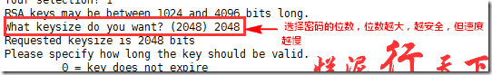 上面这张图中,是配置密钥的加密长度。默认是2048bit,密钥的长度越长,加密的速度越慢。在此我们使用的是,默认配置。